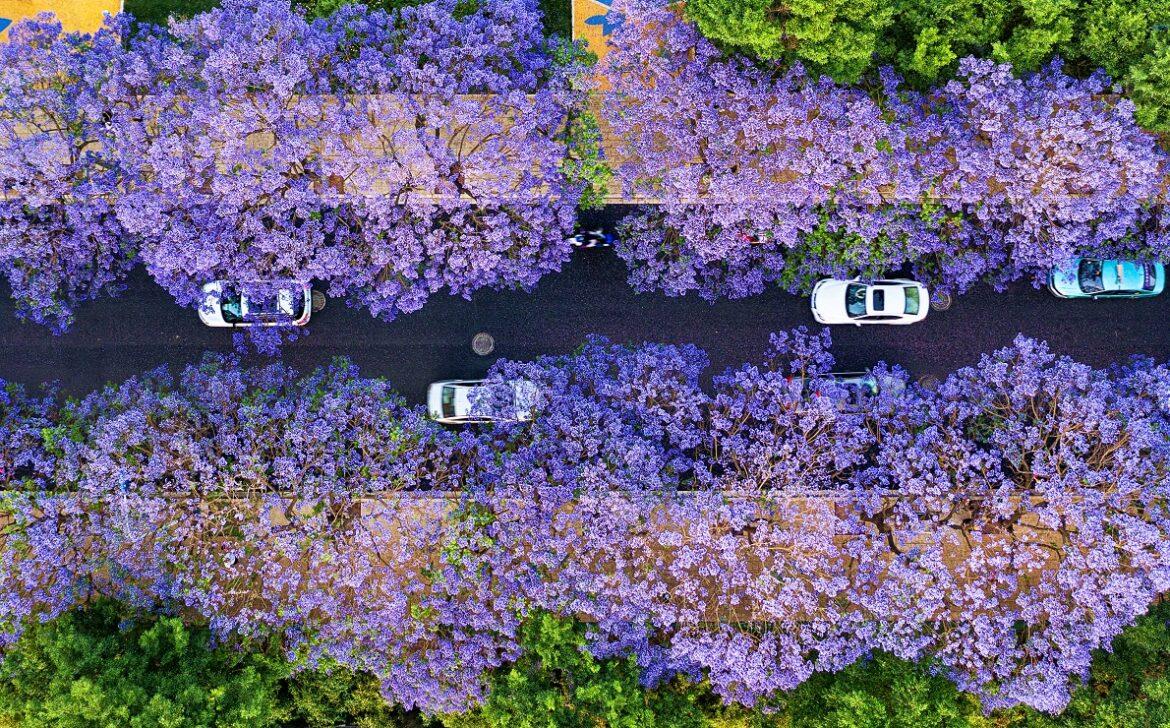 In Zimbabwe e Sudafrica, durante la stagione primaverile, che nell’emisfero australe inizia a settembre, le grandi città si colorano grazie alla fioritura di migliaia di alberi di jacaranda (importati dal Sud America a fine Ottocento) che decorano marciapiedi, strade e giardini.