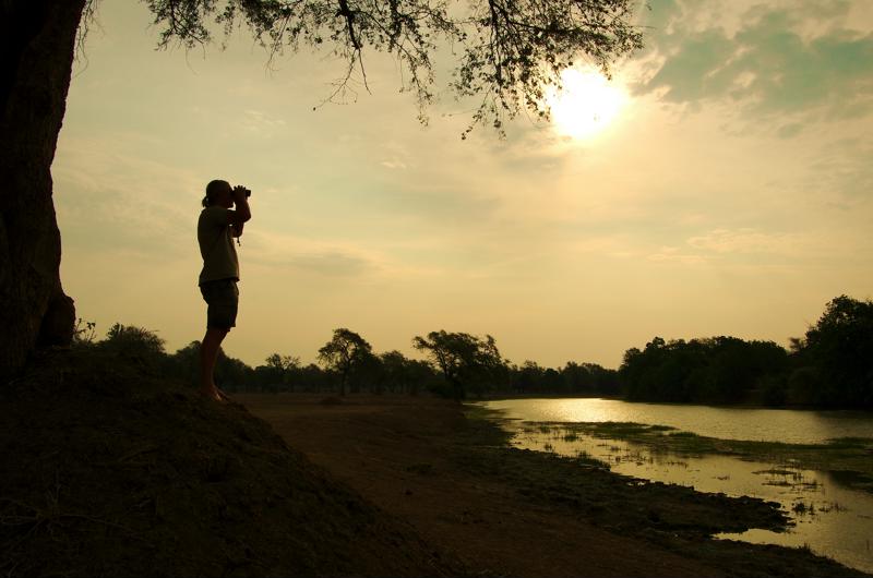 Gianni Bauce osserva l’orizzonte nel Parco di Mana Pools: un santuario naturale confinante con il fiume Zambesi dichiarato dall’Unesco Patrimonio dell’Umanità.